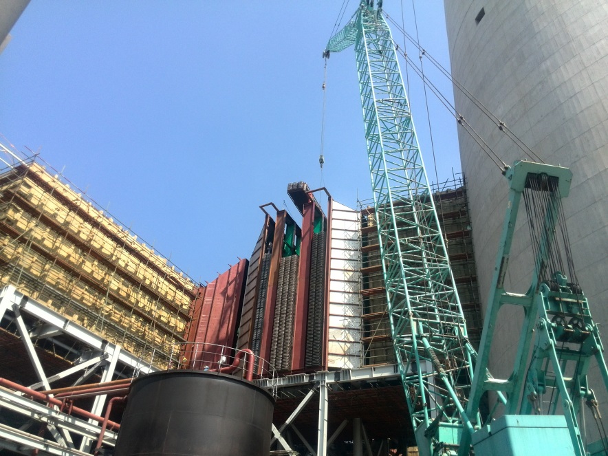 2014年9月,天潤(rùn)新能源與臺(tái)州第二發(fā)電有限公司簽訂了總價(jià)值約9262萬(wàn)元的熱媒水管式煙氣放熱器及煙氣再熱器設(shè)備采購(gòu)合同。合同一經(jīng)簽訂,臺(tái)二MGGH項(xiàng)目便緊鑼密鼓開(kāi)展了起來(lái)。MGGH系統(tǒng)輔助設(shè)備于2014年春節(jié)前陸續(xù)到達(dá)臺(tái)二現(xiàn)場(chǎng),#1爐所有72個(gè)煙氣放熱器模塊以及52個(gè)煙氣再熱器模塊也于2015年4月全部送至臺(tái)二現(xiàn)場(chǎng),#2爐所有模塊七月底也已全部送至現(xiàn)場(chǎng)安裝。截止目前,臺(tái)二電廠MGGH設(shè)備#1爐已經(jīng)全部安裝調(diào)試完成,并于2015年9月14日順利通過(guò)電廠168小時(shí)性能試驗(yàn);#2爐目前已經(jīng)吊裝完成,現(xiàn)在正在安裝外圍輔助設(shè)備,預(yù)計(jì)十月份正式進(jìn)入調(diào)試階段。如果調(diào)試順利,十一月便可以進(jìn)入168小時(shí)調(diào)試階段。由電廠反饋回來(lái)的#1爐運(yùn)行數(shù)據(jù)可以看出,MGGH系統(tǒng)的運(yùn)行結(jié)果完全符合我們的設(shè)計(jì)要求,煙氣放熱器于煙氣再熱器的進(jìn)出口煙溫基本與理論計(jì)算值相吻合,極大的消除了電廠煙囪“冒白煙”的情況??梢哉f(shuō),自MGGH系統(tǒng)投運(yùn)之后,肉眼幾乎看不見(jiàn)煙囪有煙冒出來(lái)。